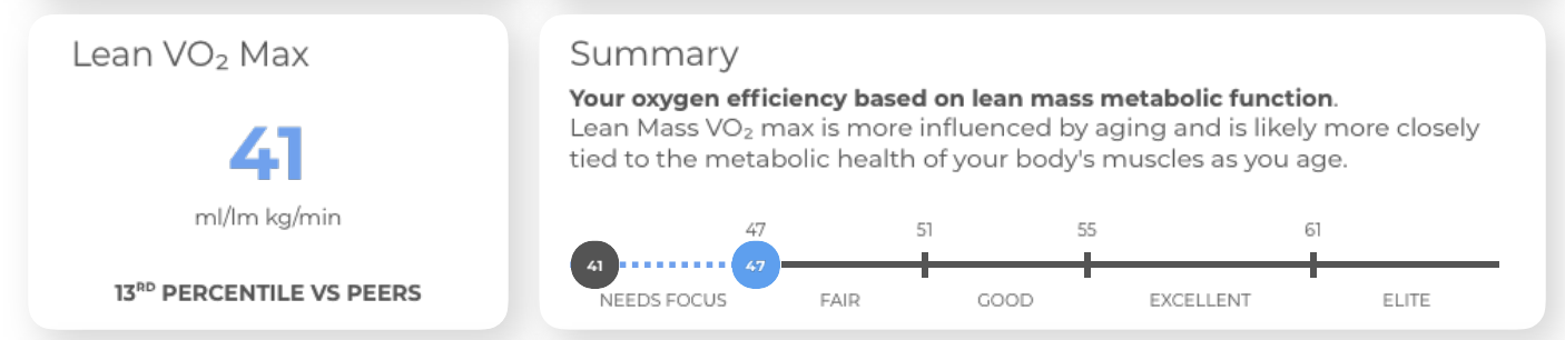 📖 Link to study: lean mass-adjusted VO₂ Max reflects “aerobic muscle quality” and is less impacted by aging than central cardiovascular measures