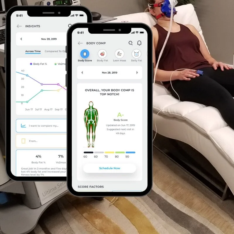 At DexaFit, we measure RMR using clinical-grade metabolic testing, which captures your actual oxygen intake and carbon dioxide output while you're reclining and fully relaxed.